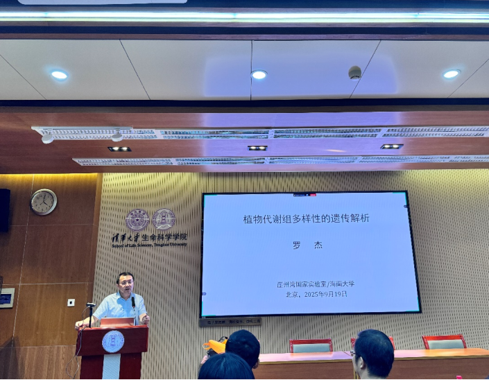 9月19日,应清华大学植物生物学研究中心邀请,海南大学的罗杰教授做客清华紫荆植物论坛,作题为“植物代谢组多样性的遗传解析”的学术报告。本次论坛由清华大学生物学高层次人才培养中心资助、由清华大学生命学院、植物生物学研究中心刘玉乐老师主持,植物生物学研究中心戚益军教授、潘俊敏教授、黄善金教授、方晓峰副教授、陈浩东副教授、齐天从副教授及五十余名学生参会。