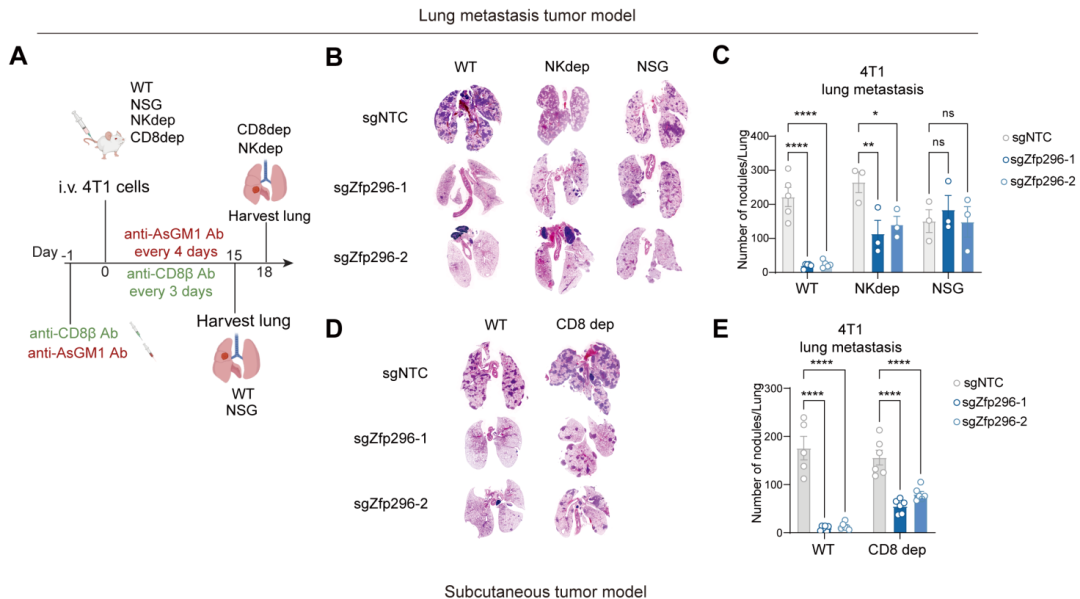 图: 抑制Zfp296抑制肿瘤生长,增强抗肿瘤免疫响应