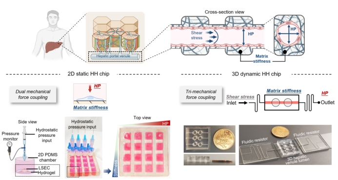 肝硬化是一种严重的慢性肝病,其核心特征之一是门静脉高压。门静脉高压导致的肝脏血管系统损伤,会引发腹水、食管胃底静脉曲张破裂出血等一系列致命并发症,全球每年导致约120万人死亡。目前,除肝移植外,尚无FDA批准的根治性药物。长期以来,由于缺乏能够模拟肝硬化状态下血管周围复杂力学微环境的体外模型,异常静水压如何导致血管损伤的病理机制一直是领域内研究的瓶颈。