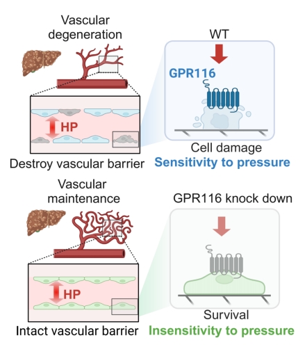 当前肝硬化治疗中,非选择性β受体阻滞剂虽能降低门静脉压力,但存在导致低血压和增加死亡风险等副作用。本研究提出了范式转变的思路:针对GPR116的干预策略旨在“维护”血管健康,防止其退化,而非简单地“阻断”血管生成。GPR116作为孤儿受体,不参与调节血管的收缩与舒张,因此以其为靶点可能提供一种比现有药物更安全的降压途径。