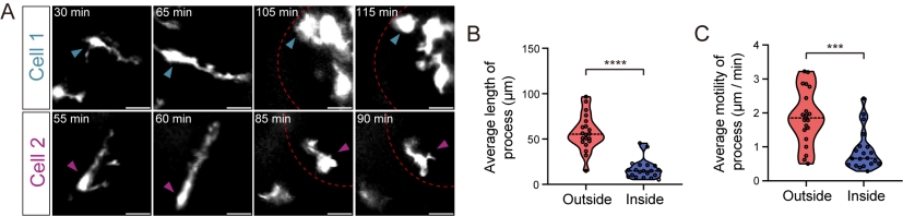 此外,通过子宫内损伤模型结合IMEE,研究证实胚胎小胶质细胞能迅速响应损伤、聚集至受损区域,并转化为激活状态,执行吞噬与组织修复功能。
