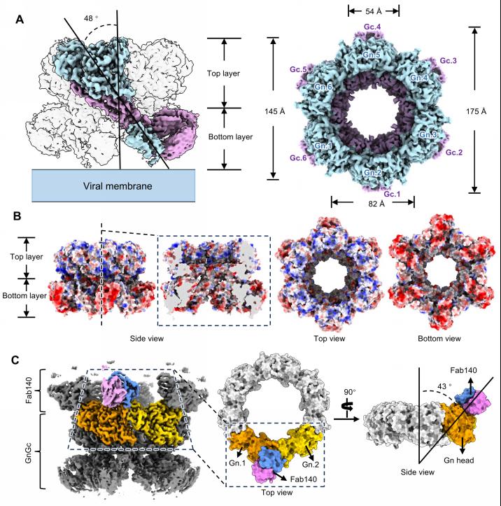 图1. 裂谷热病毒GnGc与中和性抗体RVFV-140复合物结构(摘自文章Figure 1)