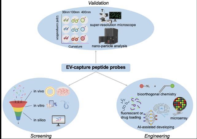 图2. 细胞外囊泡多肽探针的筛选、改造、验证策略。