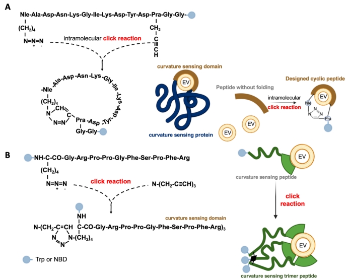 3.通过分子内环化策略,将来源于突触结合蛋白C2B结构域的线性肽通过分子内点击化学反应环化,显著提高了其结合力与曲率选择性。、
