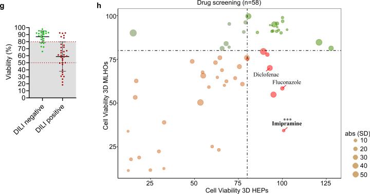 多谱系肝类器官对58种临床来源肝毒性药物进行筛选