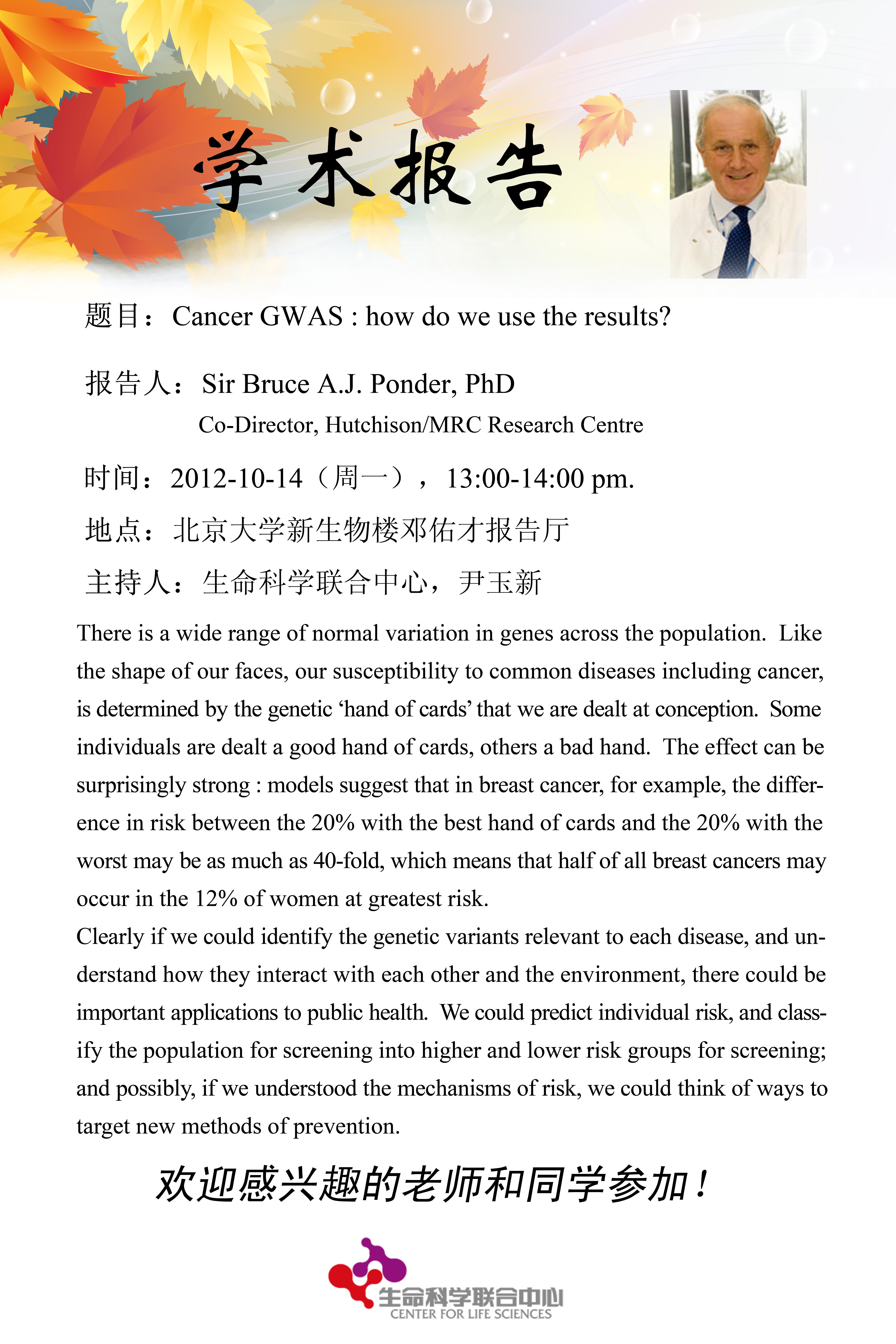10月14日生命中心学术报告--Cancer GWAS : how do we use the results?