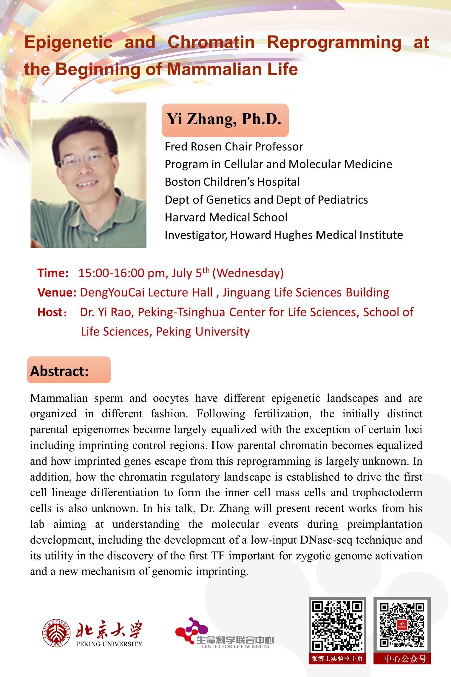 7月5日北大讲座-波士顿儿童医院、哈佛医学院张毅教授