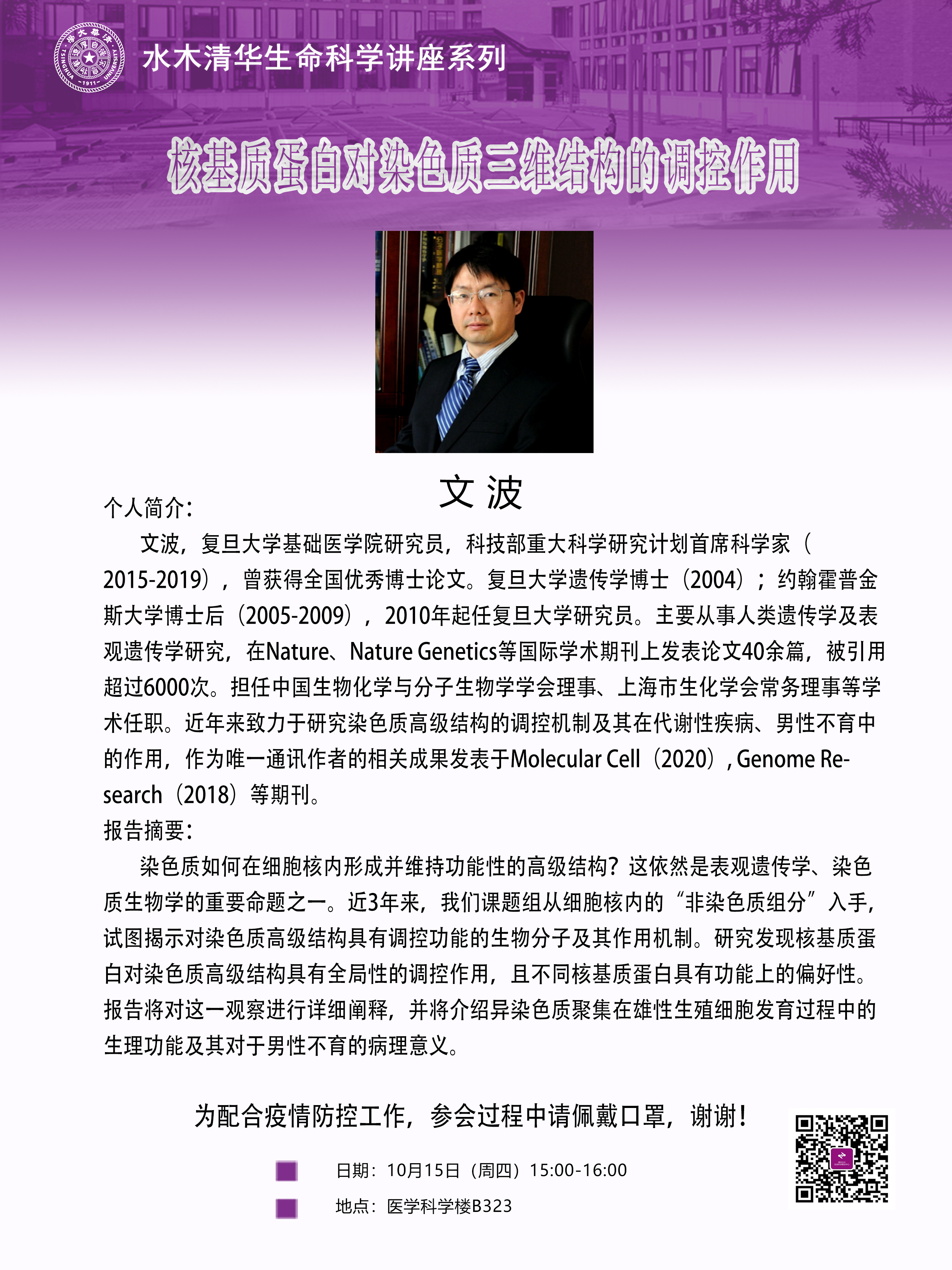 讲座题目:核基质蛋白对染色质三维结构的调控作用。