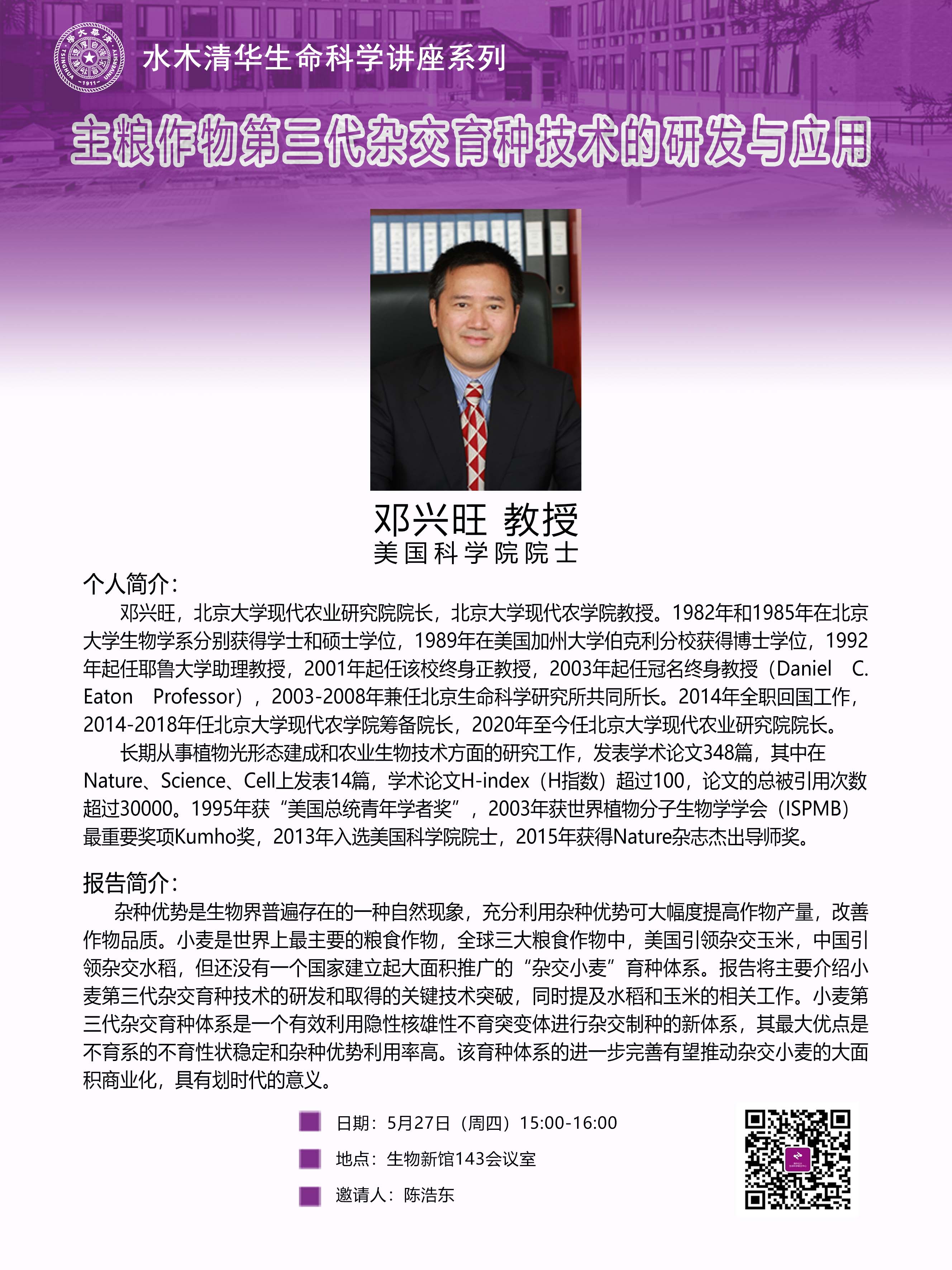 5月27日水木清华生命科学讲座系列第101期 - 邓兴旺