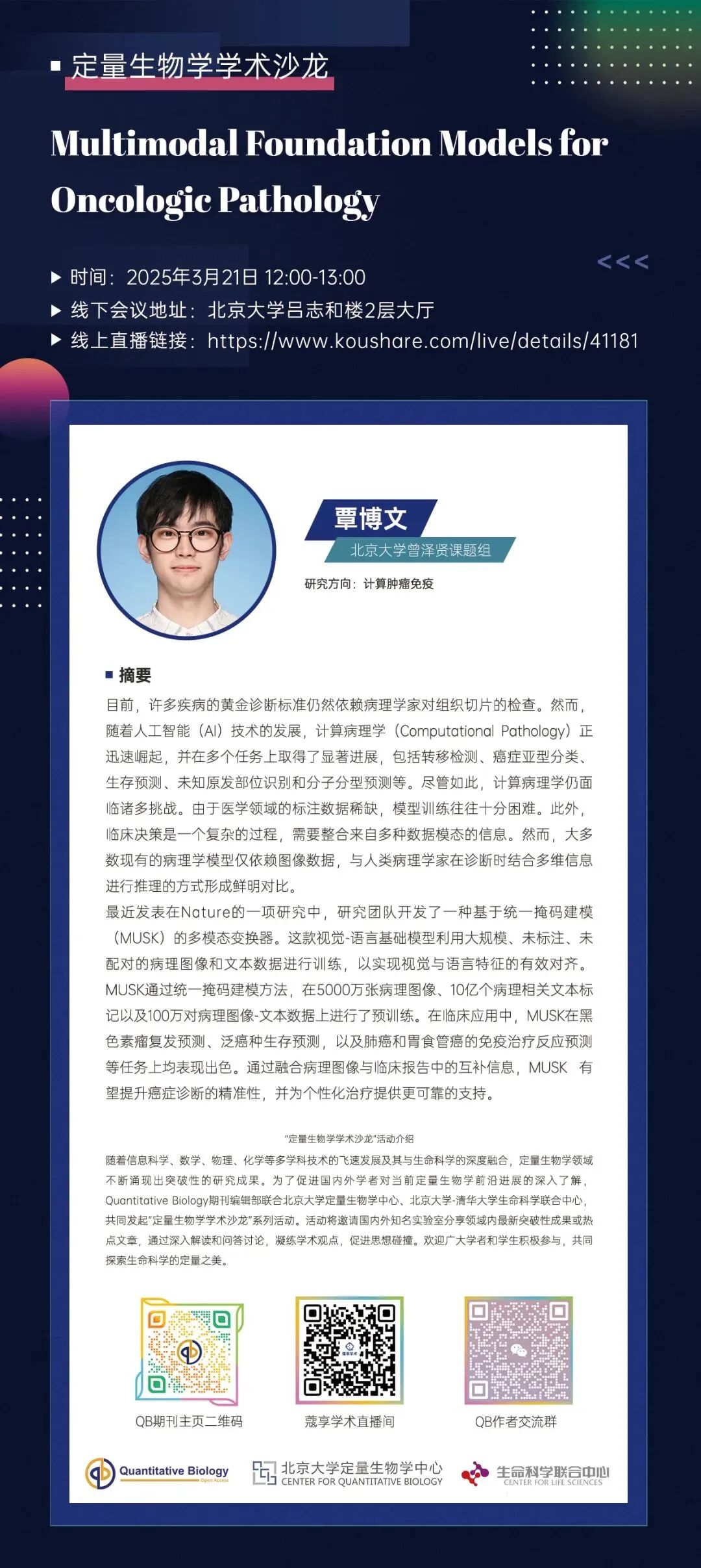 欢迎参加 3 月 21 日定量生物学学术沙龙